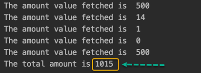 Note: Since the amount value is in string data type, we convert to integer and use it for summation.