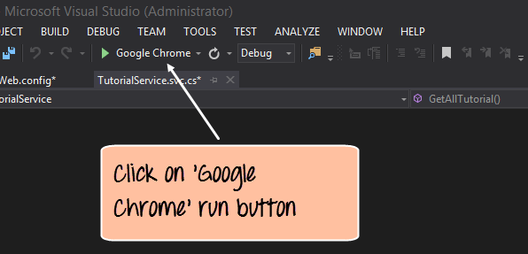 Step 3) The next step is to run the project itself. Now depending on the default browser installed on the system, the appropriate browser name will come next to the run button in Visual Studio. In our case, we have Google Chrome showing up. Just click on this button.
