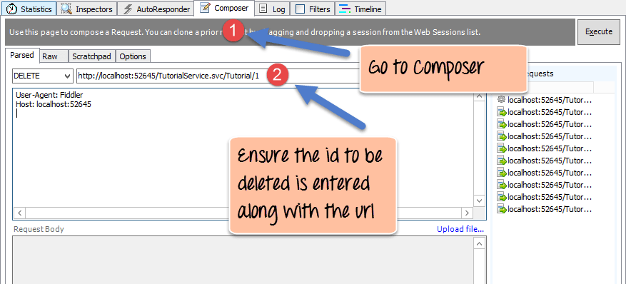 Finally, just click the Execute button in fiddler. This will send a request to the web service to DELETE the data "Queues" to our web service.