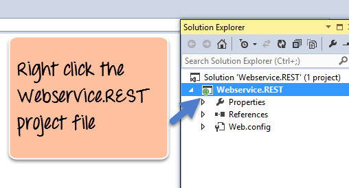 Step 1) Right click on the Project file – Webservice.REST