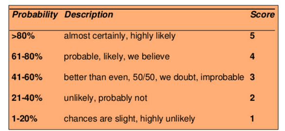 - Probable: Likely to occur several times in most circumstances (61 - 90%)