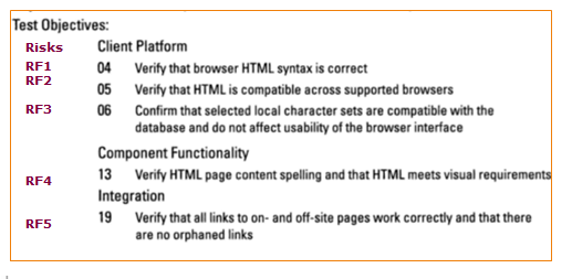- Maintain traceability between risk items, tests that cover them, results of those tests, and defects found during testing. All testing strategies executed properly will reduce quality risks.