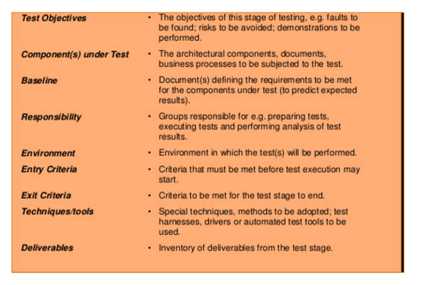 - After the scope of testing has been finalized the test objectives, assumptions, dependencies for each test stages has to be compiled in the standard format.