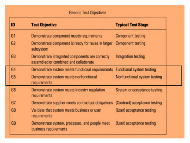 - Non-functional System Test-Testing the non-functional requirements performance, load tests, stress-test, configuration tests, Security tests, backup and recovery procedures and documentation (system, operation and installation documentation).