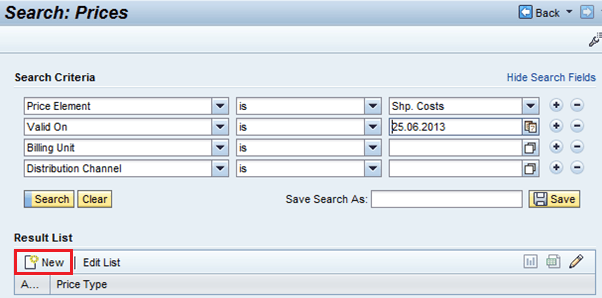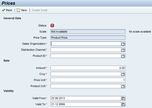 Following screen within CRM Web UI helps create a new Price Element with the required and relevant data like Sales Organization, etc.