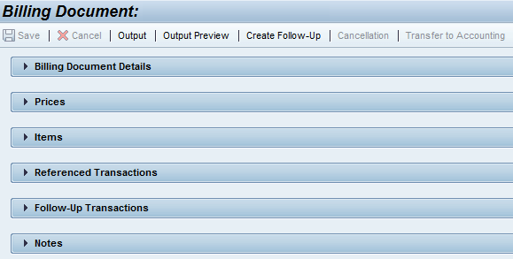 Different data related to the Billing Document can be seen within different assignment blocks in the Billing Document OverView page: