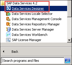 To Open Data Service Designer go to Start Menu -> All Programs -> SAP Data Services (4.2 here) -> Data Service Designer.