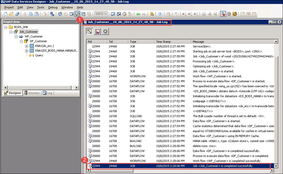 - After Executing Job, a Job Log window is displayed, in which all message regarding Job will be displayed.