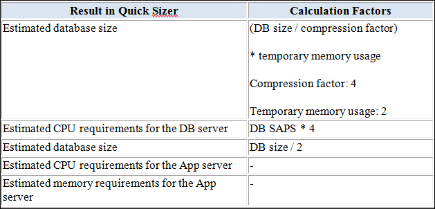 SAP HANA DB differ in sizing with normal DBMS in terms of –