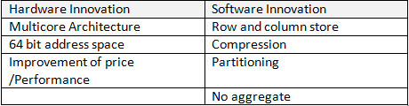 Below are SAP HANA Innovation in the field of Hardware/Software.