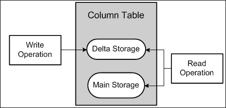 Main Storage contains the main part of data. In Main Storage, suitable data compression Method (Dictionary Encoding, Cluster Encoding, Sparse Encoding, Run Length encoding, etc.) is applied to compress data with the purpose to save memory and speed up searches.
