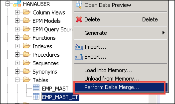 When we want to move these changes into Main Storage, then use "delta merge operation" from SAP HANA studio as below –
