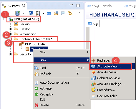 STEP 7) An attribute view with name "AT_PRODUCT" will be created. To view, refresh the Attribute View folder.