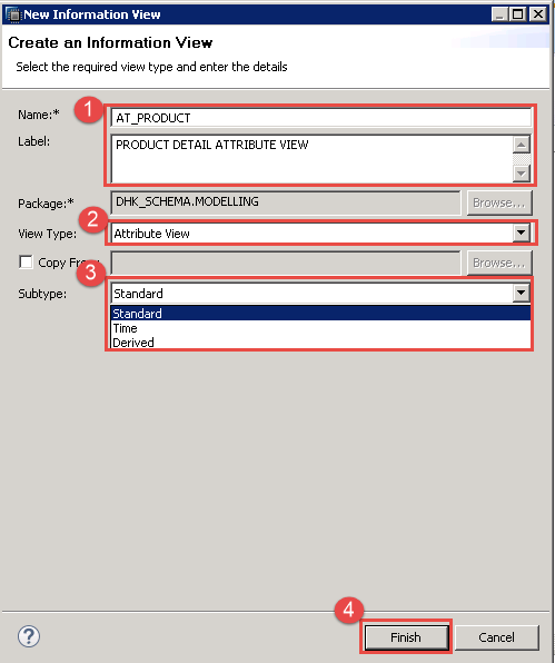 Note: Difference between Derived and Copy from is, in the case of derived, you can only edit the description of new attribute view while in the case of copy, you can modify everything entirely.