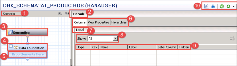 STEP 3) Information view editor screen will open. Detail of each part in Information Editor is as below -