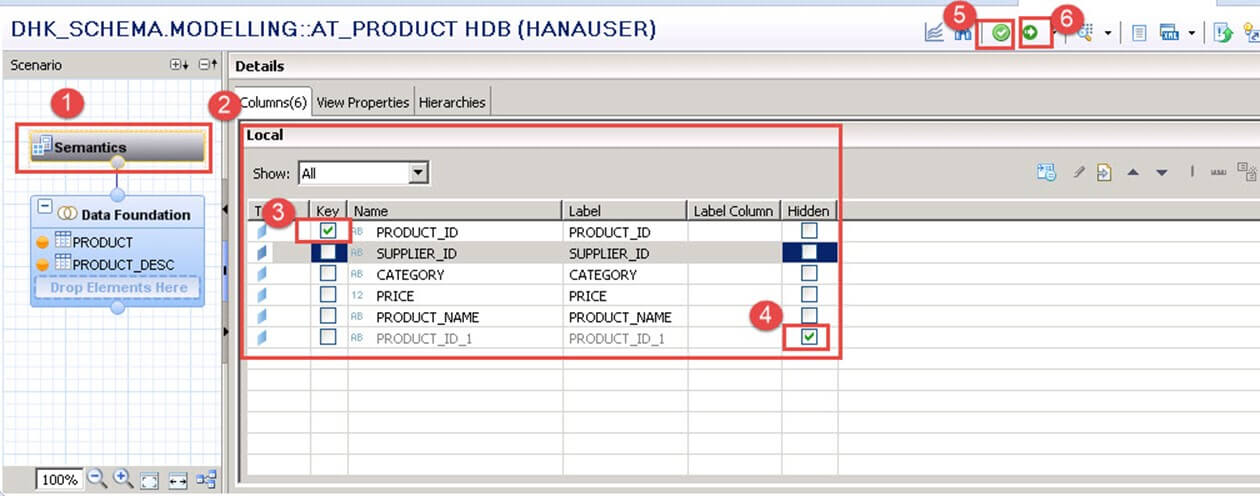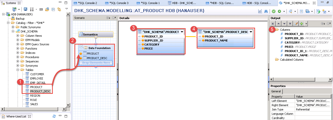 Here we are going to create Standard Attribute View for product table, so firstly we create "PRODUCT" and "PRODUCT_DESC" Table.