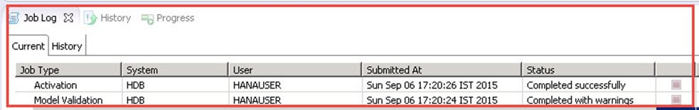 Job Log for validation and activation activity is displayed on bottom of screen on the same page, i.e. Job Log section as below -