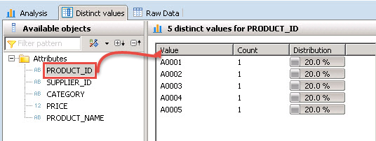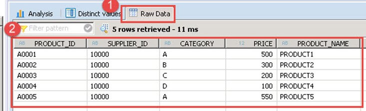 Raw Data tab: This option display data of attribute view in table format.