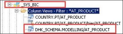 Screen shot of column view "AT_PRODUCT" under "_SYS_BIC" Schema of catalog node is as below -