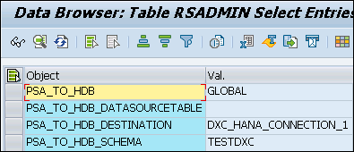 PSA_TO_HDB_DESTINATION: In this we need to Move the Incoming data (in this we need to Give the value which we create in SM59) ( here XC_HANA_CONNECTION_HANAS)