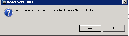 A message "User 'ABHI_TEST' deactivated" will be displayed. The De-Activate icon changes with name "Activate user". Now we can activate user from the same icon.