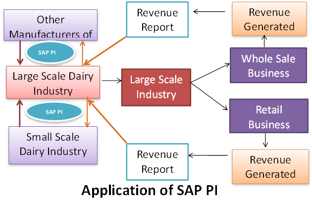 To understand the concept of SAP PI more clearly, we take an example of a large-scale Dairy Industry, which is operating in a large portion of a state and dominating the region. But there is some small-scale dairy industries operating in the same region, parallel to the large-scale industry which is not making a profit due to their price variation compare to large-scale industry. So to avoid the pricing conflict and maintaining the same price all over the region, large scale and small scale industry decide to link together, with the help of SAP PI. They interconnect with each other with the help of SAP PI and started to work as a single unit. Now, through SAP PI they are able to exchange all the information pertaining to dairy industry, including pricing and share an equal amount of profit.