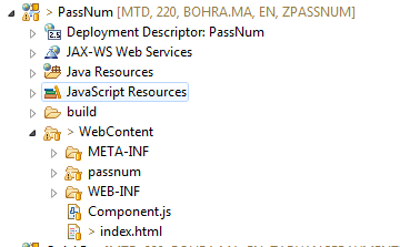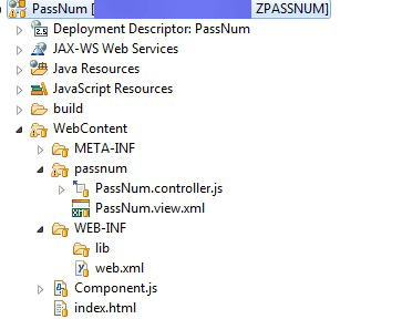 Name of the parent Component project is PassNum. And the technical name of the BSP application generated after deployment of SAPUI5 component to ABAP frontend server is zpassnum. The project structure will look like below