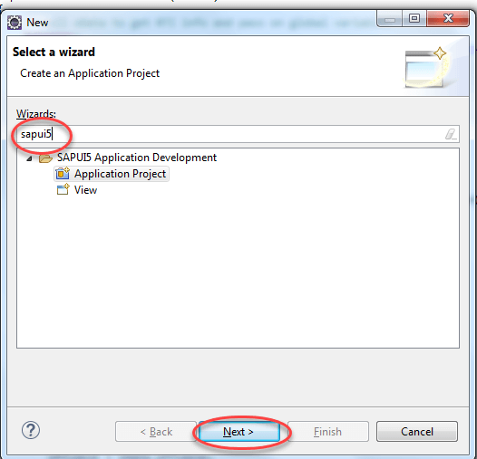 Create an application project for SAPUI5 by following the wizard that opens up. See screenshot below.