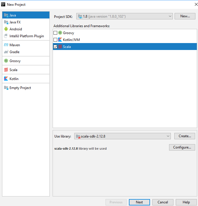 Step 2) choose Scala by selecting the Scala checkbox and click next.