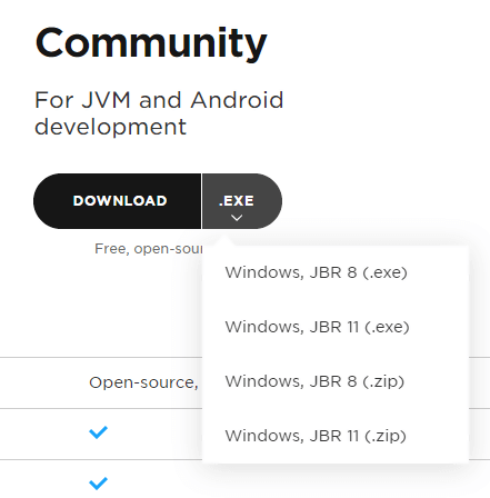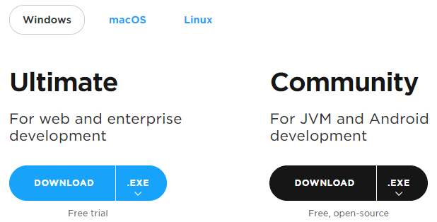 Once you visit the download link, you'll find two versions of the IntelliJ IDE.