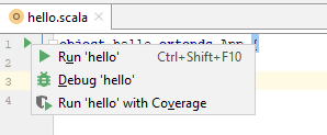 Extending our object with App tell the compiler which code to run when it starts your program. Immediately after extending App, a green arrow shows up on the left side, indicating that you can now be able to run your program.