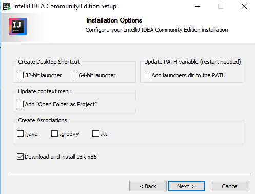 If by chance you didn't download the one with the JDK, we still get a prompt where that we can check to download it by selecting the checkbox.