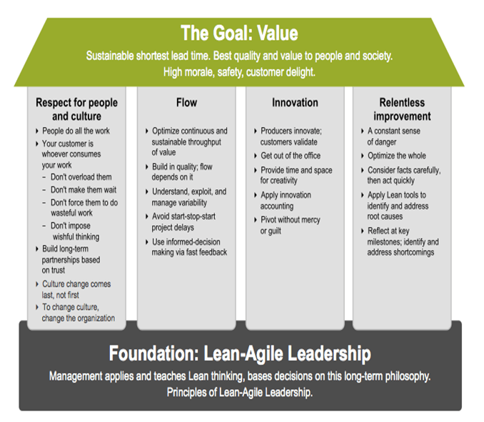 Below figure explains the Goal, Pillars, and Foundation of "SAFe House of Lean."