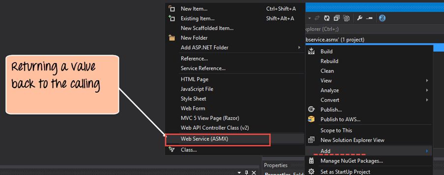 In our example, we are going to create a simple web service, which will be used to return a string to the application which calls the web service. But this time, around, when the web service is invoked, the credentials need to be supplied to the calling service. Let's follow the below steps to create our SOAP web service and add the security definition to it.