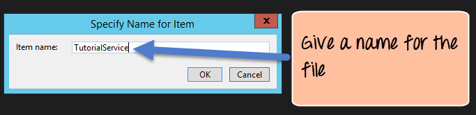 The above step will prompt a dialog box,wherein one can enter the name of the web service file. So in the below dialog box, enter the name of TutorialService as the file name.