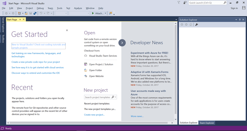 Step 8) Visual Studio 'Get Started' screen will appear.