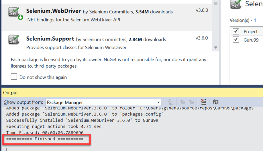 Step 4) The below message will be displayed once the package is successfully installed.