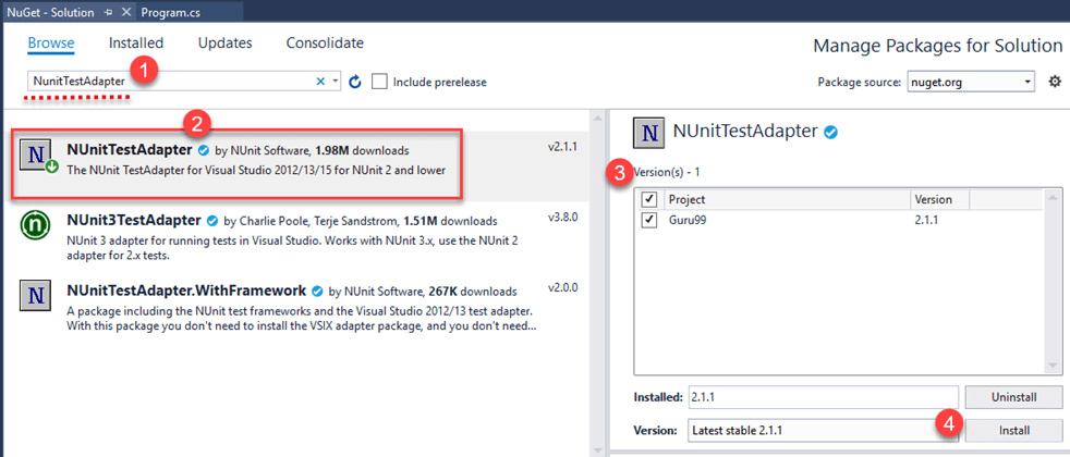 Now in this NUnit tutorial, we will cover the steps to download NUnit Test Adapter: