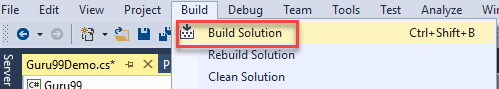 Step 4) Click on 'Build' -> 'Build Solution'