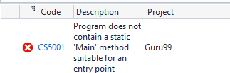 NOTE: You may get an error like "Does not contain a static 'main' method suitable for an entry point" when you build