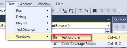 Step 5) Once the build is successful, we need to open the Test Explorer window. Click on Test -> Windows -> Test Explorer