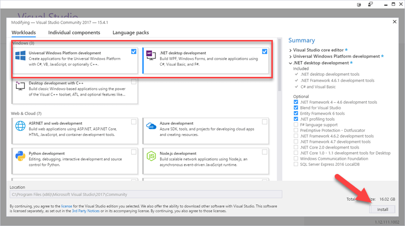 Wait for installation of each component to complete. Files are 16GB in size and will take time.
