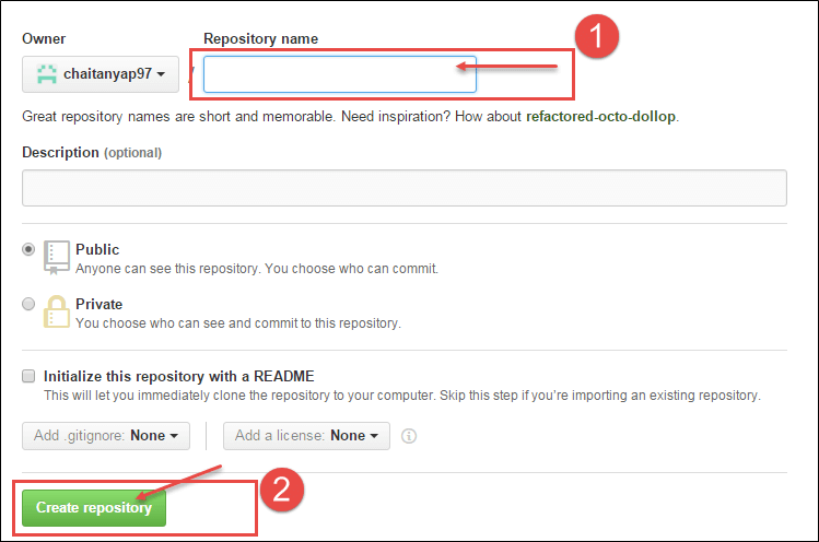 Step 2) Once you have been successfully signed up then click on create new repository