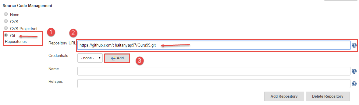 Step 14) In this step, we will configure Git Hub in Jenkins