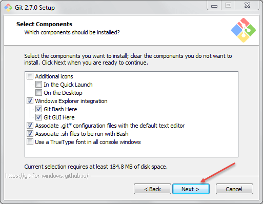 Step 6) Click on "next" button in git setup wizard