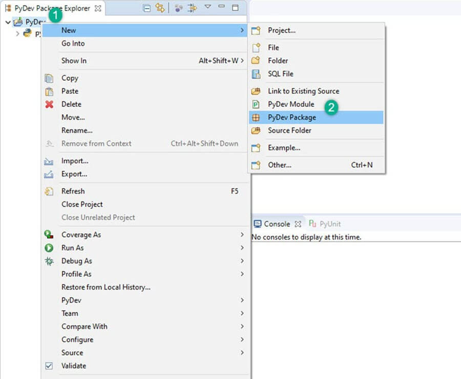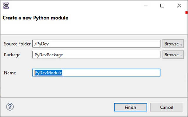 After creating a new package, the next step is to createPyDev Module. The module contains some Python files for initialization. These files or functions from the module can be imported into other module. So, there will be no need to re-write the program again.