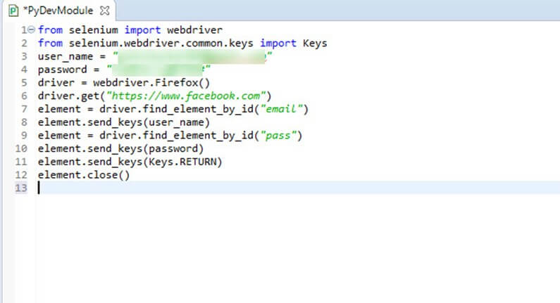 In this Selenium WebDriver with Python example, we did automation for "Facebook login page" using the Firefox driver.