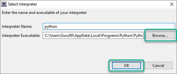 Step 5) In this step, give the "interpreter name" and the "exe" file path of Python.