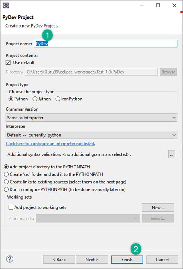 Let's sets the default Python Interpreter. It is just like you need to set java compiler for running a Java code. To change the interpreter name, click on Browse for python/pypy exe Button.
