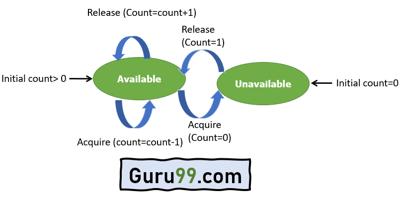 This type of Semaphore uses a count that helps task to be acquired or released numerous times. If the initial count = 0, the counting semaphore should be created in the unavailable state.